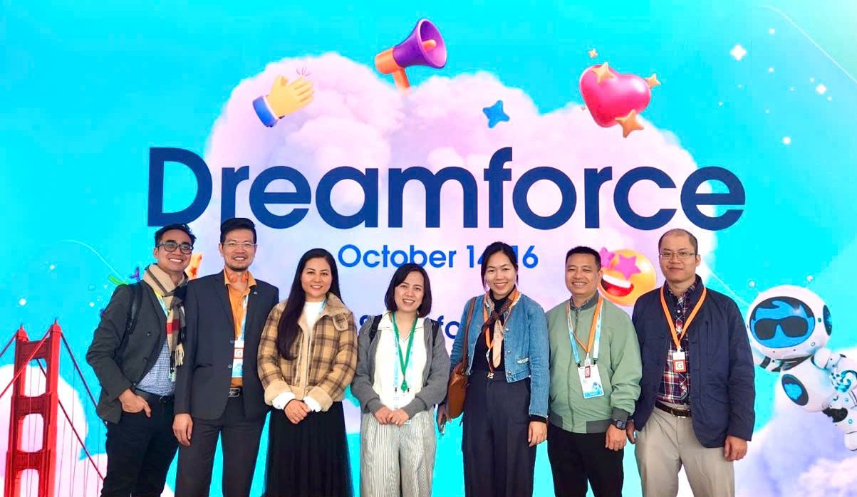 Nổi bật, Gimasys đã cử đoàn chuyên gia trực tiếp sang San Francisco (Mỹ) tham dự Dreamforce 2025 – một trong những sự kiện công nghệ lớn nhất Thế giới được tổ chức bởi Salesforce. Sự hiện diện này của Gimasys vừa cho thấy tinh thần “Không ngừng đổi mới, không ngừng bứt phá” (Leverage Innovation), vừa khẳng định cam kết sẵn sàng mang những xu hướng công nghệ mới nhất toàn cầu, thúc đẩy chuyển đổi số an toàn và bền vững cho ngành Ngân hàng Việt Nam.