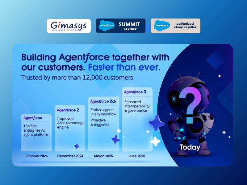 Với hơn 20 năm kinh nghiệm, Gimasys tự hào là đối tác tin cậy của doanh nghiệp, cung cấp các giải pháp số hàng đầu, kiến tạo hiệu quả vượt trội. Chúng tôi sẵn sàng đồng hành cùng các tổ chức Việt Nam tự tin đón đầu xu hướng Agentic Enterprise với lộ trình tư vấn chiến lược chuyển đổi số bài bản, khai thác tối đa sức mạnh của các giải pháp Agentic AI (như Agentforce) ứng dụng vào vận hành thực tiễn doanh nghiệp.
