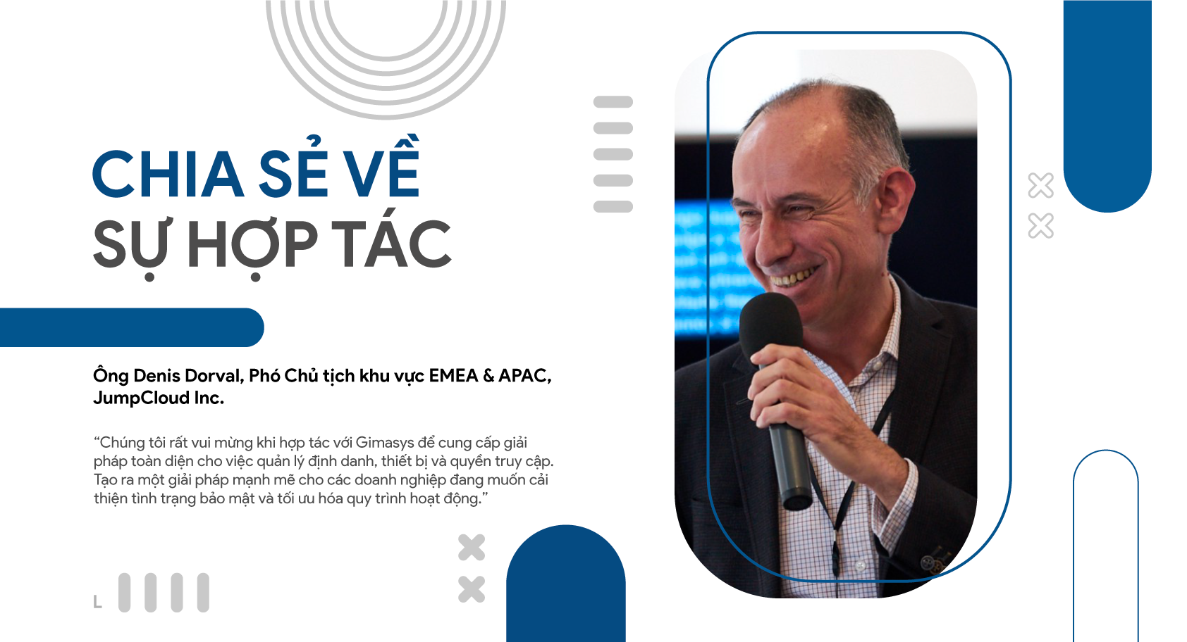 Ông Denis Dorval – Phó Chủ tịch khu vực EMEA & APAC của JumpCloud chia sẻ “Chúng tôi rất vui mừng khi hợp tác với Gimasys để cung cấp giải pháp toàn diện cho việc quản lý định danh, thiết bị và quyền truy cập. Tạo ra một giải pháp mạnh mẽ cho các doanh nghiệp đang muốn cải thiện tình trạng bảo mật và tối ưu hóa quy trình hoạt động.”
