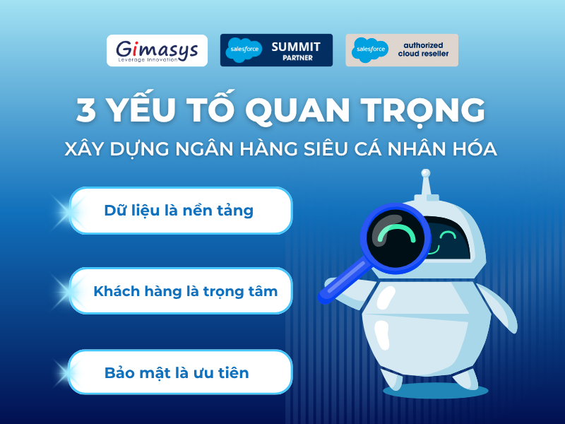 Các chuyên gia của Gimasysnhận định Salesforce Data Cloud và Marketing Cloud đang trở thành “hướng đi” tối ưu nhất giúp các ngân hàng Việt Nam từng bước hiện thực hóa tầm nhìn siêu cá nhân hóa, góp phần xây dựng hệ sinh thái dịch vụ thông minh, linh hoạt và lấy trải nghiệm người dùng làm trọng tâm. Bộ giải pháp này của Salesforce cũng được các chuyên gia đánh giá hội tụ những giá trị cốt lõi, giúp ngân hàng đáp ứng đầy đủ cả 3 yếu tố: dữ liệu, khách hàng và bảo mật.