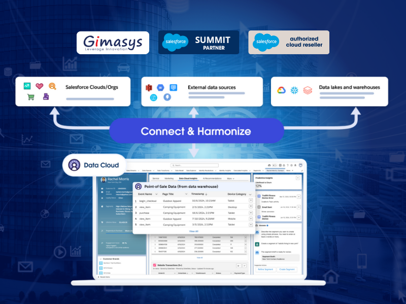 Theo các chuyên gia Gimasys, Salesforce Data Cloud sở hữu khả năng kết nối, hợp nhất và làm sạch dữ liệu nhanh chóng và mạnh mẽ; nhờ đó cho phép các ngân hàng khai thác tối đa “mỏ vàng” dữ liệu khổng lồ từ mọi nguồn như hệ thống core banking, ứng dụng giao dịch trực tuyến, website…. và kiến tạo góc nhìn 360 độ toàn diện về từng khách hàng trên một nền tảng duy nhất, được cập nhật liên tục theo thời gian thực.