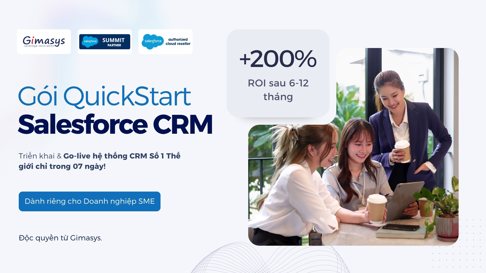 Gói QuickStart giúp doanh nghiệp vận hành Salesforce CRMchỉ trong 1 tuần, giảm chi phí đầu tư nhưng vẫn đạt hiệu quả tối đa, tăng ROI.