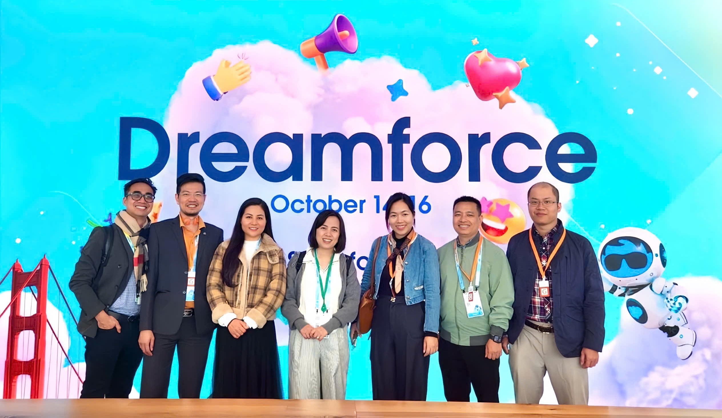 Nổi bật, Gimasys đã cử đoàn chuyên gia trực tiếp sang San Francisco (Mỹ) tham dự Dreamforce 2025 – một trong những sự kiện công nghệ lớn nhất Thế giới được tổ chức bởi Salesforce. Sự hiện diện này của Gimasys vừa cho thấy tinh thần “Không ngừng đổi mới, không ngừng bứt phá” (Leverage Innovation), vừa khẳng định cam kết sẵn sàng mang những xu hướng công nghệ mới nhất toàn cầu, thúc đẩy chuyển đổi số an toàn và bền vững cho ngành Ngân hàng Việt Nam.