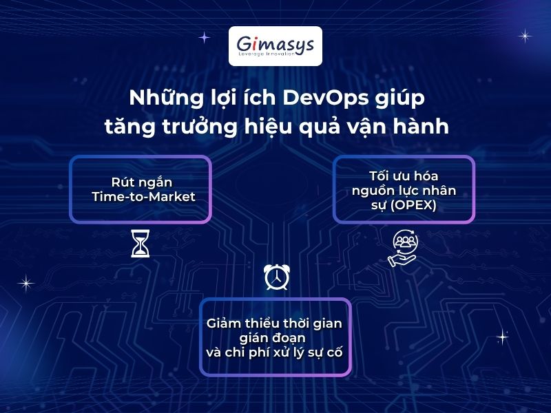 Quá trình chuyển đổi số yêu cầu việc chuyển hóa các khái niệm kỹ thuật thành những giá trị kinh doanh (ROI) cụ thể. Những lợi ích DevOps tác động trực tiếp đến hiệu quả vận hành bao gồm: